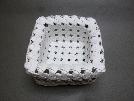 神奈川ライトハウスでは、不要になった点字用紙を使用して、かごや袋などの製品を作成しています。